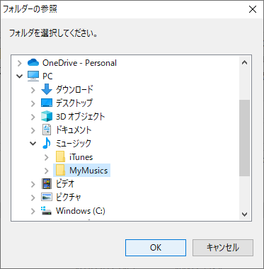 - 楽曲ファイルを保存しているフォルダ(ルートフォルダ)を選択する